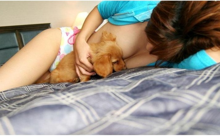 여자 가슴에 안겨있는 건 사람이건 동물이건