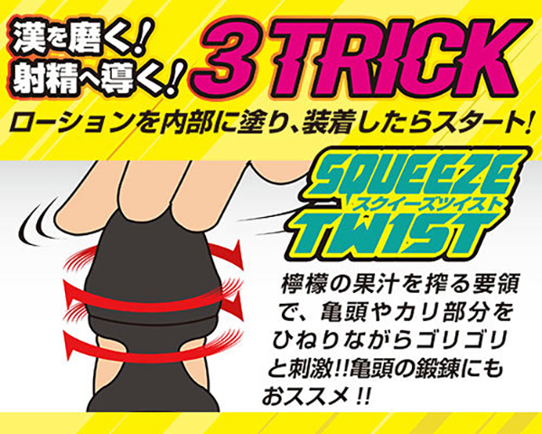 「스퀴즈 트위스트」 레몬즙을 짜듯 옆으로 비틀어 귀두를 자극하는 방법.