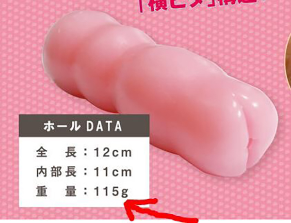 무게는 117g, 총 길이는 약 12cm입니다. 엄지 손가락을 붕대로 감싸하면 이 사이즈가 나오지 않을까 싶을만큼 본체가 부실해 보여서 소형 홀이라기보다 [텐가 에그]에 가깝다고 할 수 있는 간이 홀이네요.