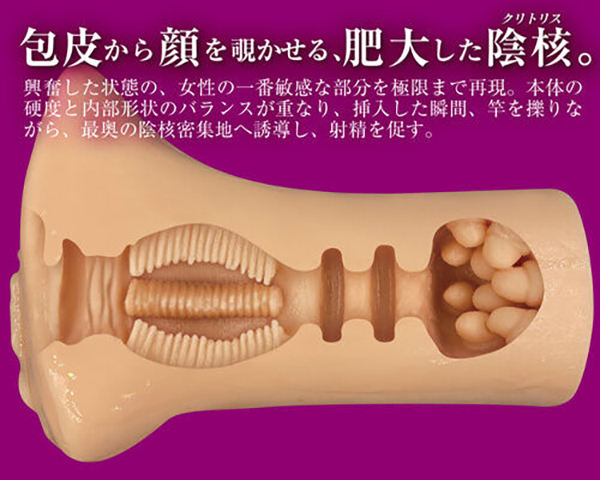 패키지 사진에서도 그 모양이 이미 드러나 있고, [통째로 음핵]이라고 해도 클리토리스만 달랑 만든 것이 아니라 꽤 커다란 클리토리스가 붙어 있는 리얼한 형태의 오나홀로 보입니다.