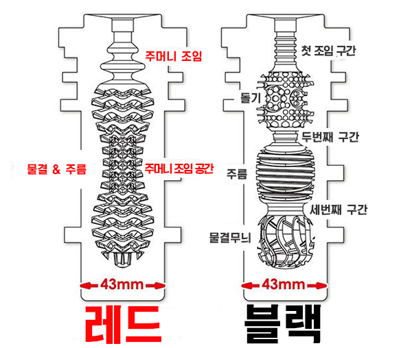 블랙은 약 184g으로 아주 미세하지만 레드가 더 무겁습니다. 컵 홀 내부에 들어가는 오나홀로서 200g이라는 무게는 상당히 큰 편이라고 생각됩니다.