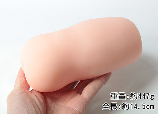 무게는 약 447g, 전체 길이는 약 14.5cm입니다. 얕게 굴곡이 들어갔고 형태가 둥글둥글한 오나홀입니다.