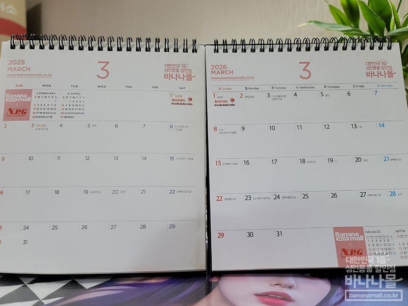 다만 모델 사진도 세로가 늘어나서 달력 스프링 부분과 겹치는게 좀 아쉽네요