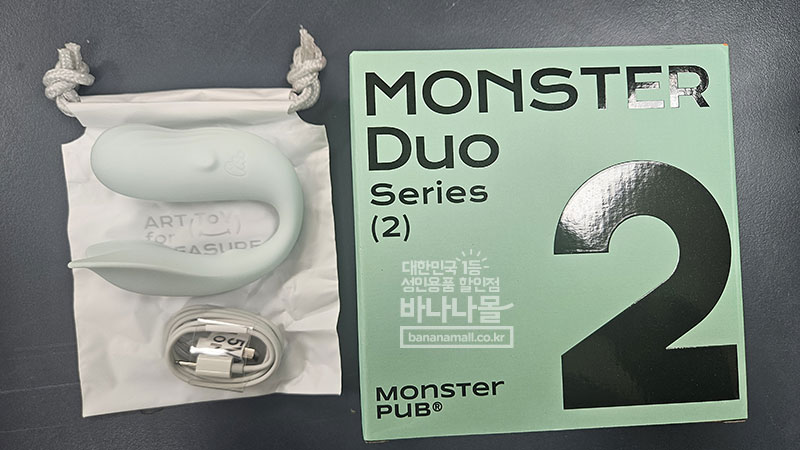 택배 받았을 때 가장 먼저 든 생각은 "패키지가 왜 이렇게 예쁘지?" 였어요. 민트색 박스에 'Monster Duo Series (2)'라고 적혀있는 디자인이 감각적이고, 성인용품 특유의 부담스러운 느낌이 전혀 없어서 오히려 아트토이 받은 기분이었어요.