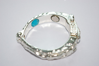 반지의 외관은 나름 링다운 모습을 지녔으며 내부에는 자석이 부착되어 있어 이로 하여금 성기능을 강화시켜 주는 것으로 보입니다. 붉은색의 큐빅은 디자인용인 것 같은데 비취색상의 큐빅은 어떠한 역할을 하는지 모르겠네요.