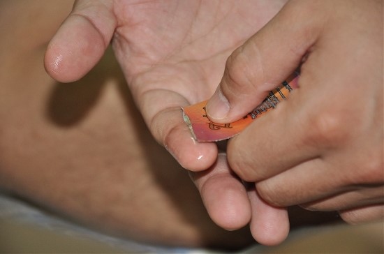 콘돔 오른쪽의 필름지에 들어잇어요 3장 들어있어서 오늘 한개 사용합니다.