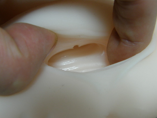 삽입구는 하나 있구여 위 사진에서 보이듯 등쪽에 배출구가 있는 관통형 구조이고 안에 주름이 잡혀 있네요
