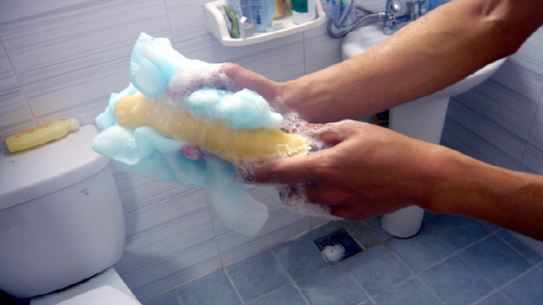 하단부에 빨판(?)이 붙어있어 바닥이나 벽면에 붙여놓고 셀프로 사용할수 있습니닷;