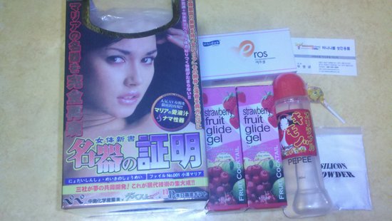 구성품은 명기의 증명을 비롯해 기모찌 오리지날 페페젤, 과일젤2통, 콘돔1통, 파우더1봉, 사탕 등이 있네요.