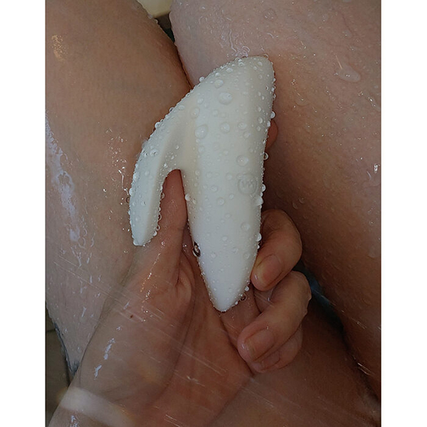 클리 자극 부위는 만져 보면 실리콘 안에서 위아래로 움직이는 단단한 파츠가 들어 있다는 것을 알 수 있습니다. 손가락 안쪽으로 쓰다듬기보다는 손끝으로 콕콕 건드리며 노는 모습을 떠올리게 하는 경도인데, 실제 사용감이 기대됩니다.