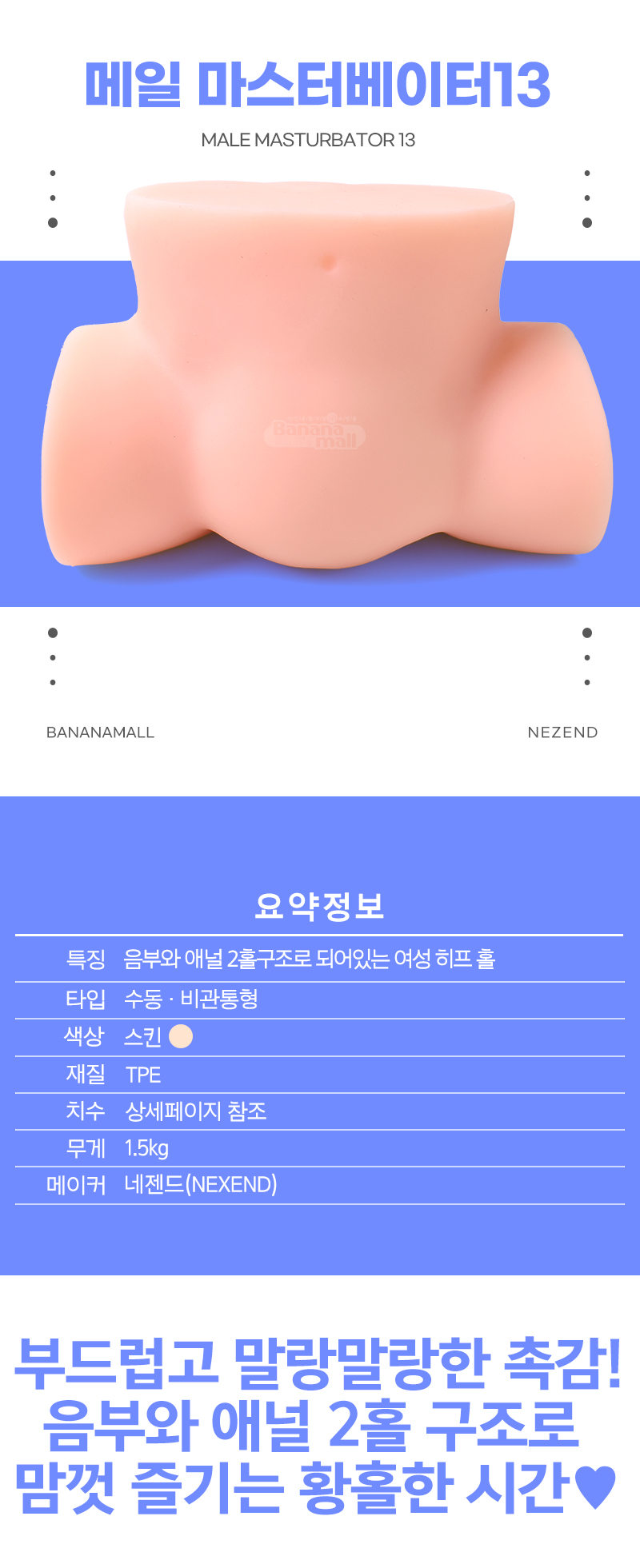 탄력있고 부드러운 엉덩이를 즐겨보세요! 실제 피부를 만지는듯 말랑말랑한 TPE재질로 제작되어