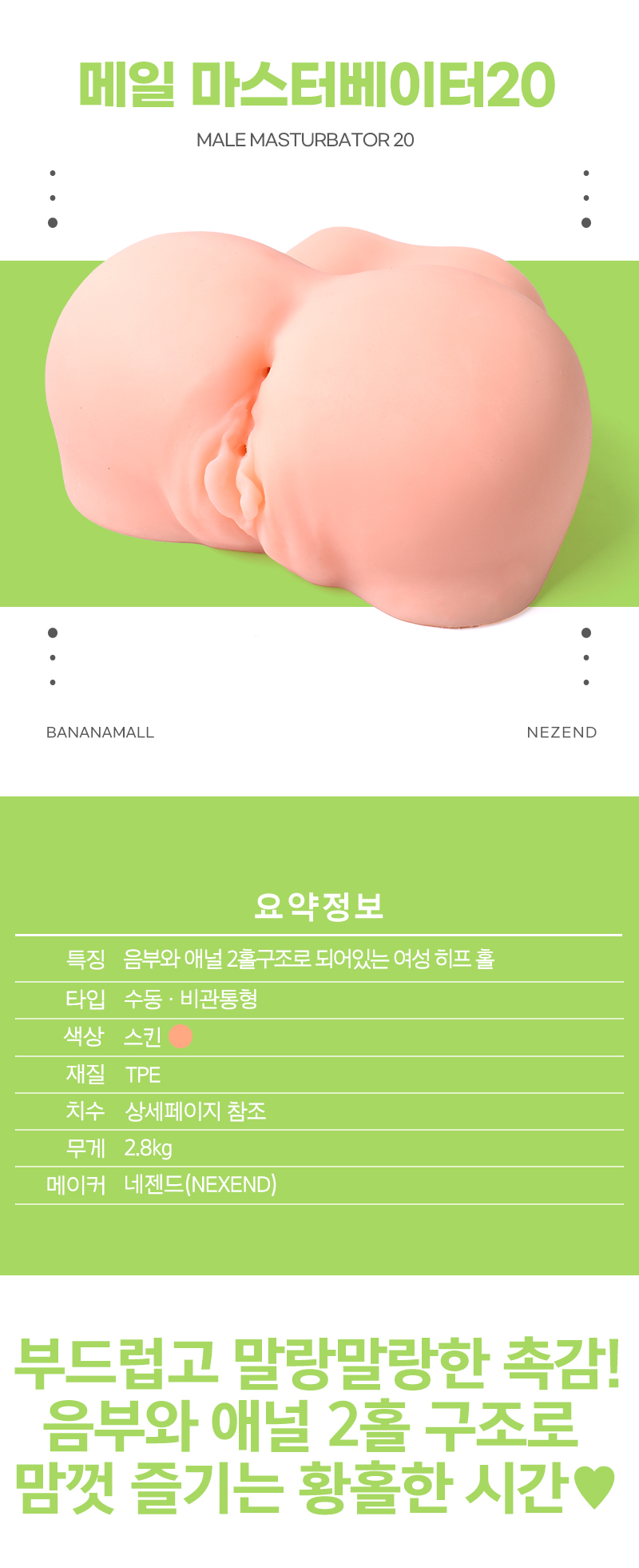 구현한 디테일이 돋보이는 상품입니다. 양 손에 가득차는 크기의 메일 마스터베이터 20!