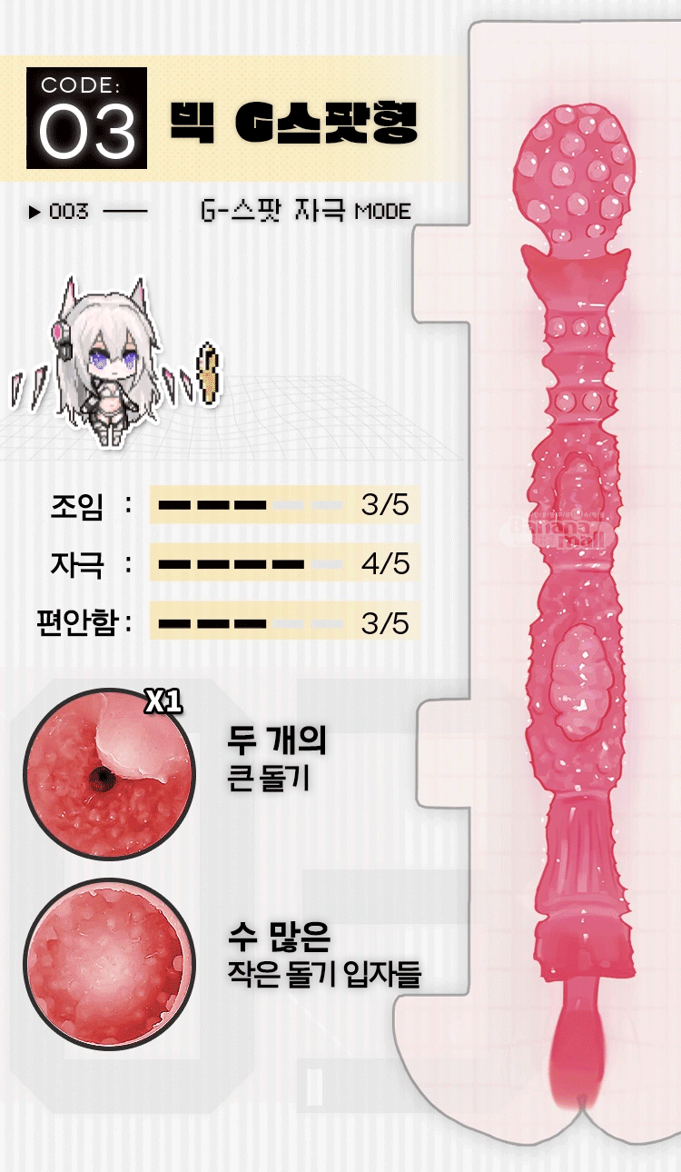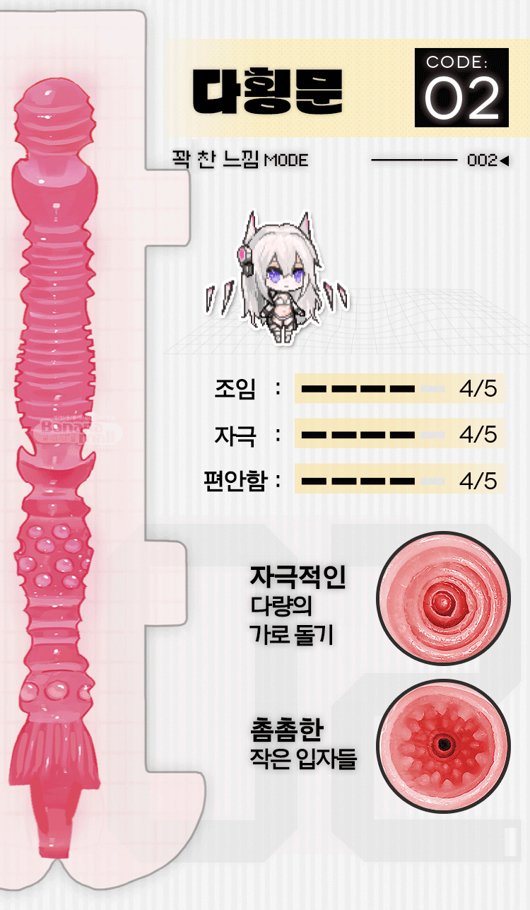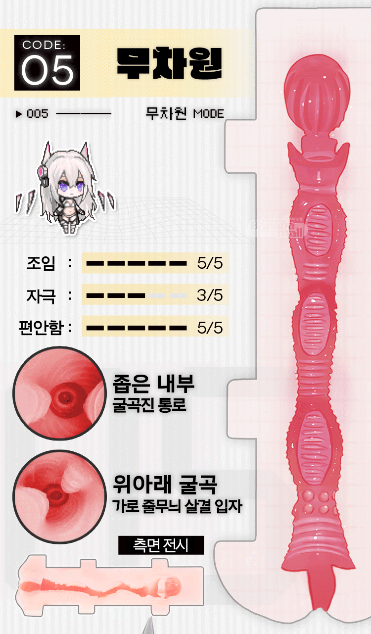 5가지의 내부 홀을 교체하여 그날그날 기분 좋은 자극과 오르가즘을 즐길 수 있습니다.