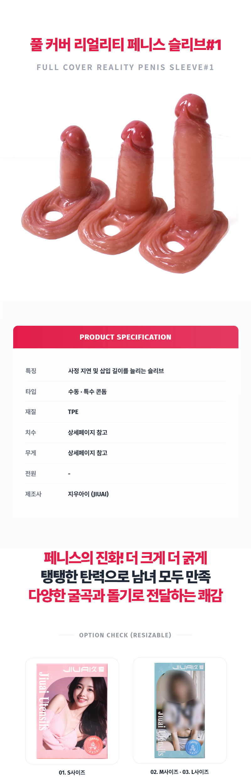 [특수콘돔] 풀 커버 리얼리티 페니스 슬리브#1(Full Cover Reality Penis Sleeve#1) - 지우아이(6942257943393) (JAI)