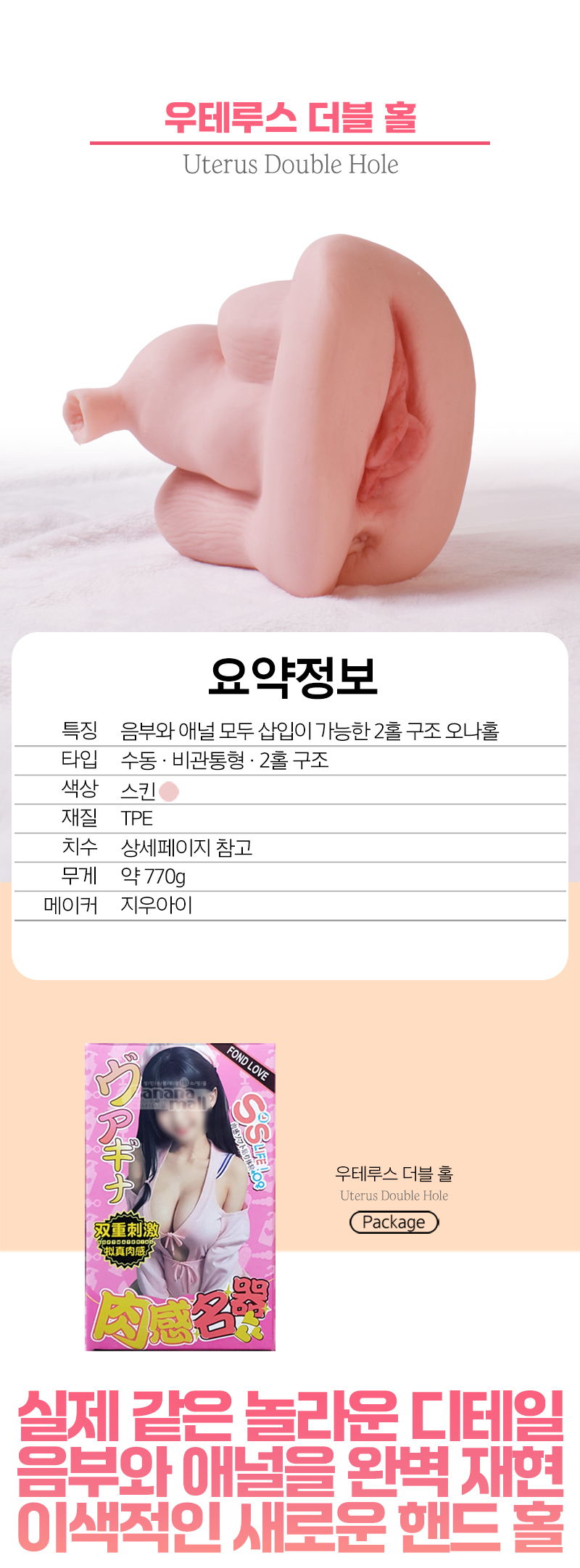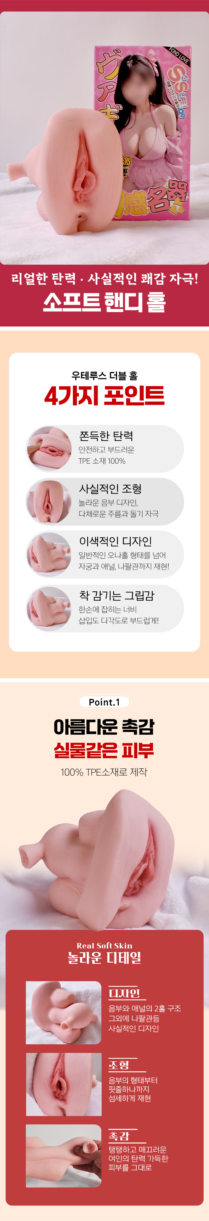 일반적인 핸드 홀에서 벗어나 여성의 성기를 보다 리얼하고 디테일하게 조형한 핸드 홀