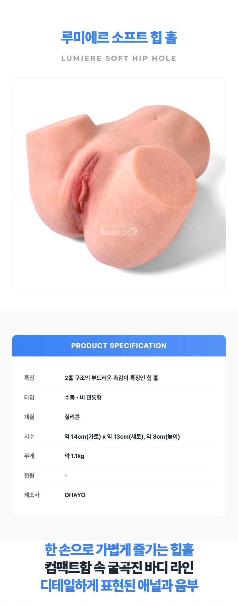 [2홀 구조] 루미에르 소프트 힙 홀(Lumiere Soft Hip Hole) - 실리콘/오하요(QYB-002) (OHA)