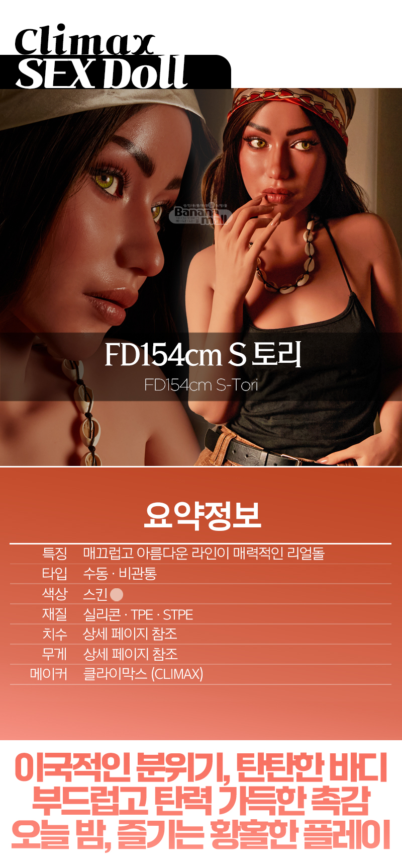 강렬한 이목구비의 이국적인 느낌과 탱탱한 촉감의 피부, 다양한 체위로 움직일 수 있는 튼튼한 골격