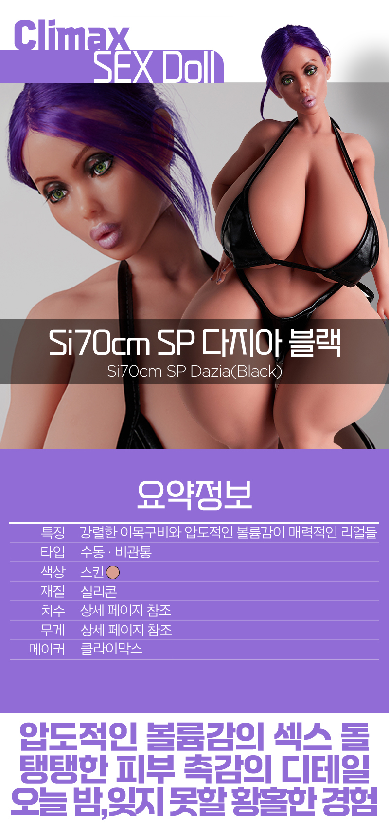 [전신 리얼돌] Si70cm SP 다지아 블랙 (Si70cm SP Dazia(Black)) - 클라이막스 (CLMX)