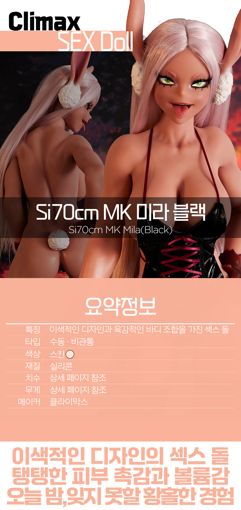 [전신 리얼돌] Si70cm MK 미라 블랙 (Si70cm MK Mila(Black)) - 클라이막스 (CLMX)