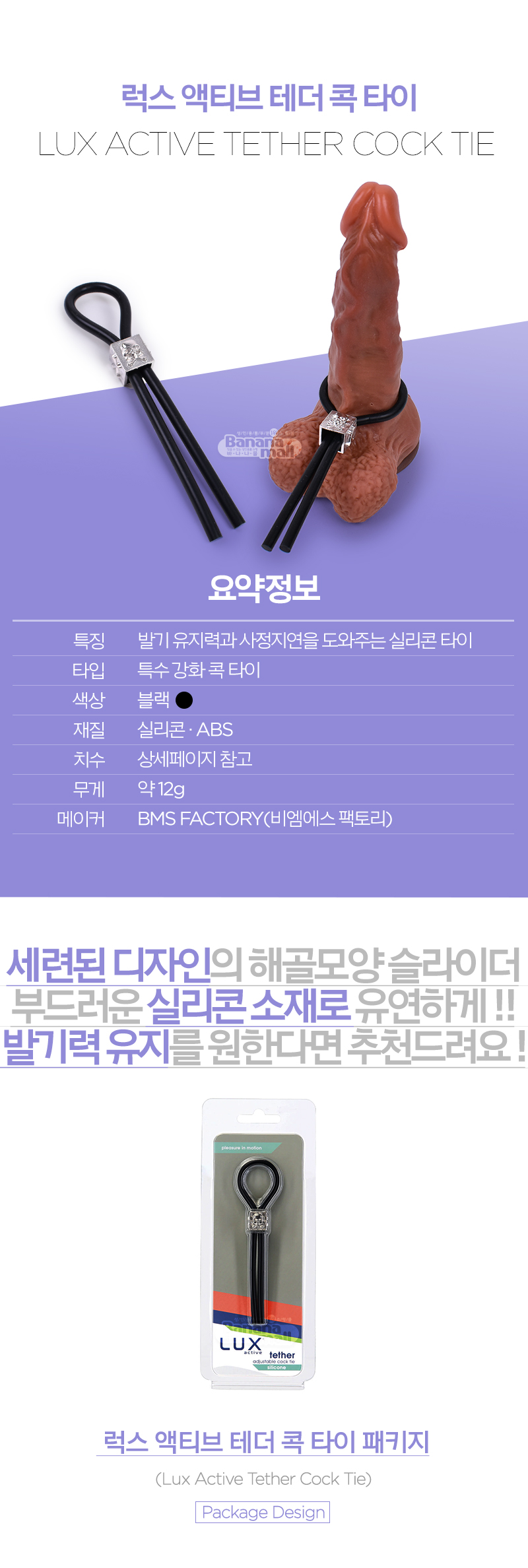 럭스 액티브 테더 콕 타이 (Lux Active Tether Cock Tie) , 사정지연
