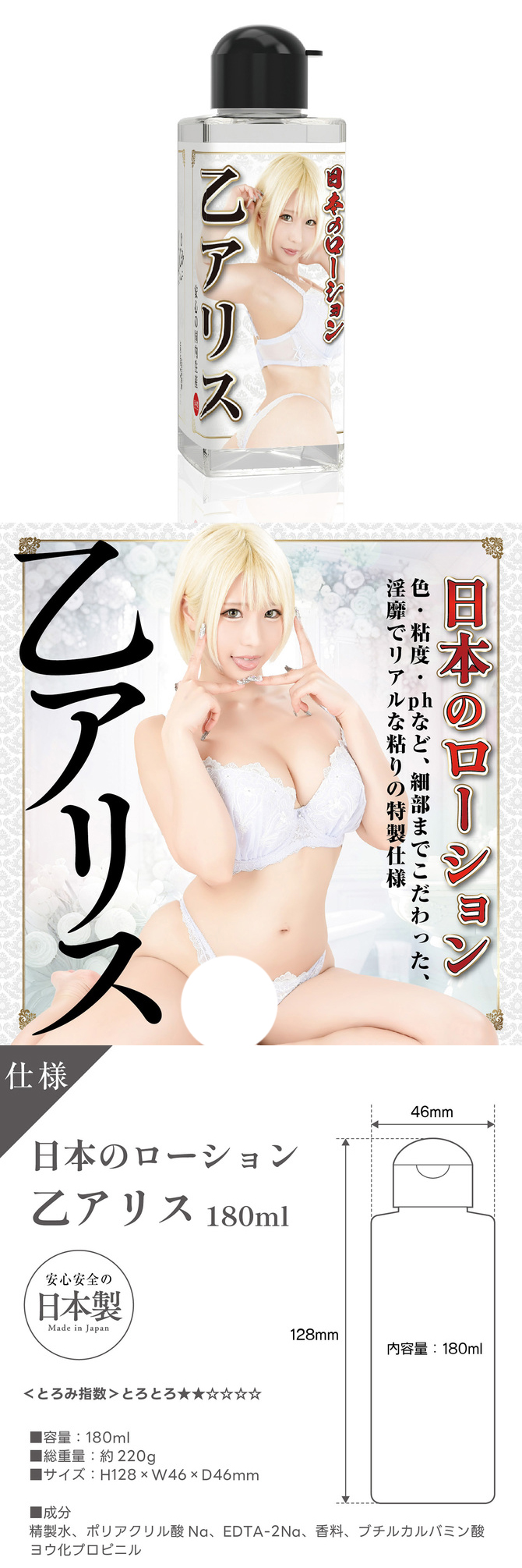 【오츠 아리스】의 멈출 줄 모르는 애액을 촬영 현장에서 조사하여, 색감·질감·향기까지 로션에 반영했습니다.