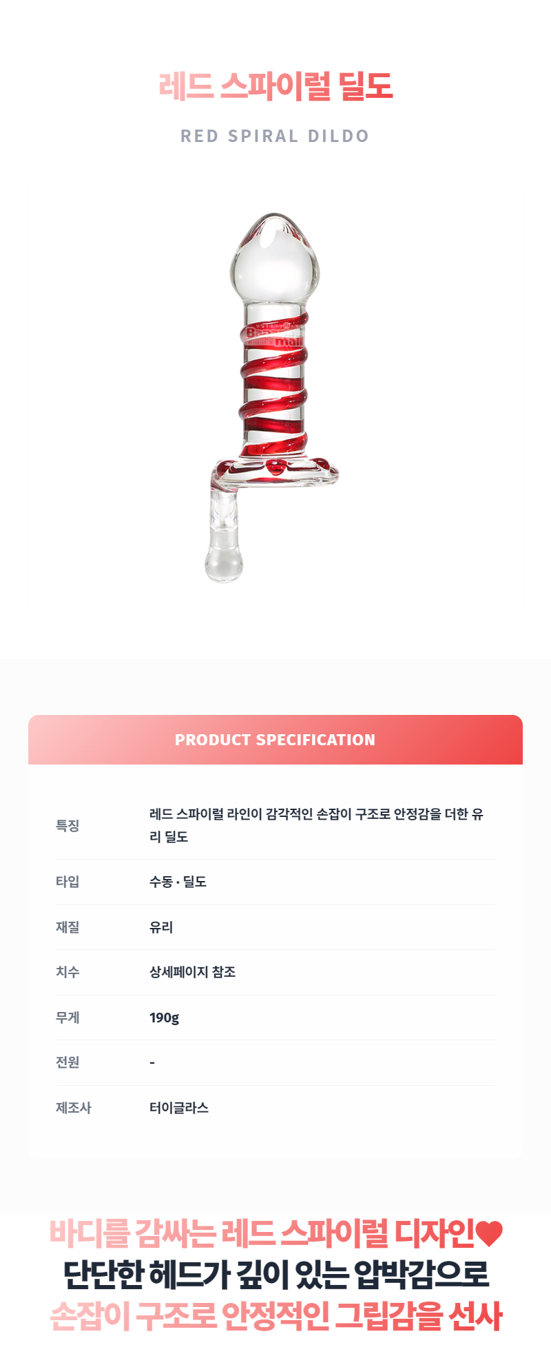 [유리 딜도] 레드 스파이럴 딜도 (Red Spiral Dildo) - 터이글라스(TG-122) (TYG)