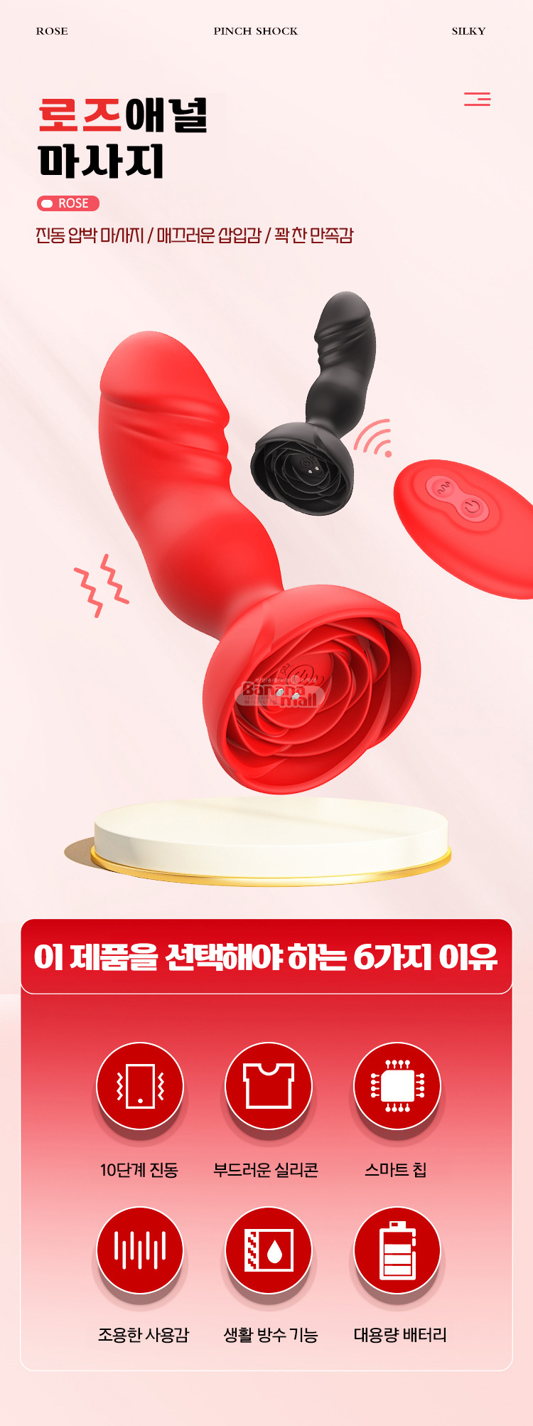 남녀 모두가 사용할 수 있는 강력한 진동 자극을 선사하는 아름다운 장미의 애널 플러그♥