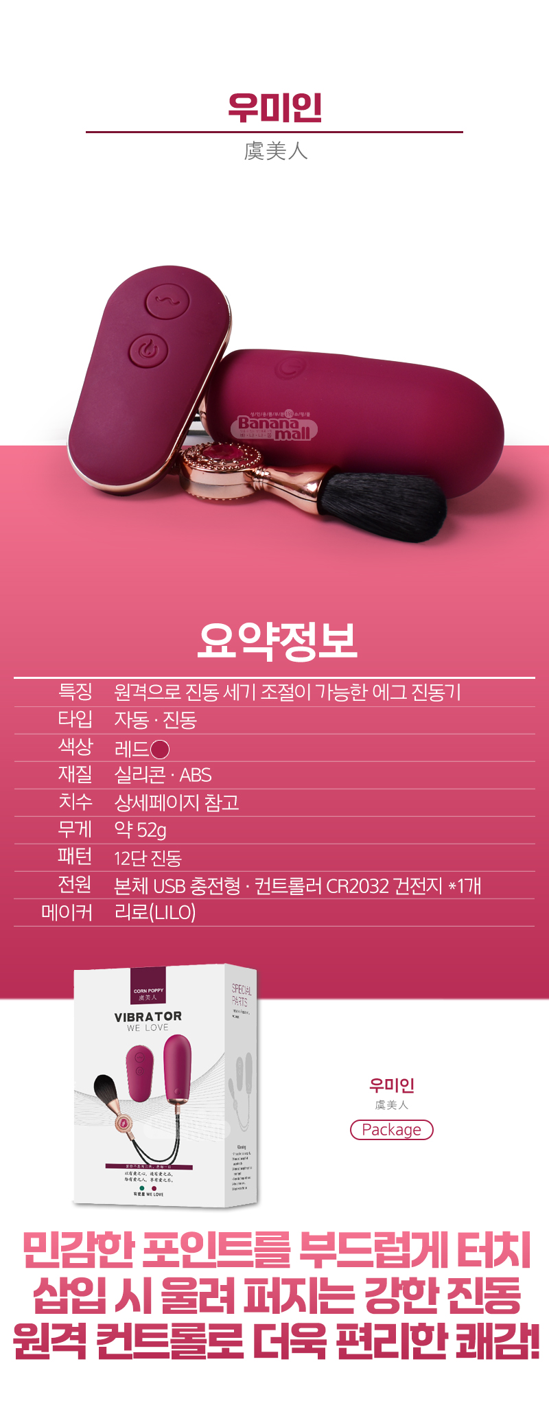 둥근 에그 디자인으로 편안하게 삽입되는 자극, 원격 컨트롤러로 번거롭지 않고 편안하게 진동모드를 변경해 시간과 장소 상관없이 즐거운 플레이를 경험해 보세요.