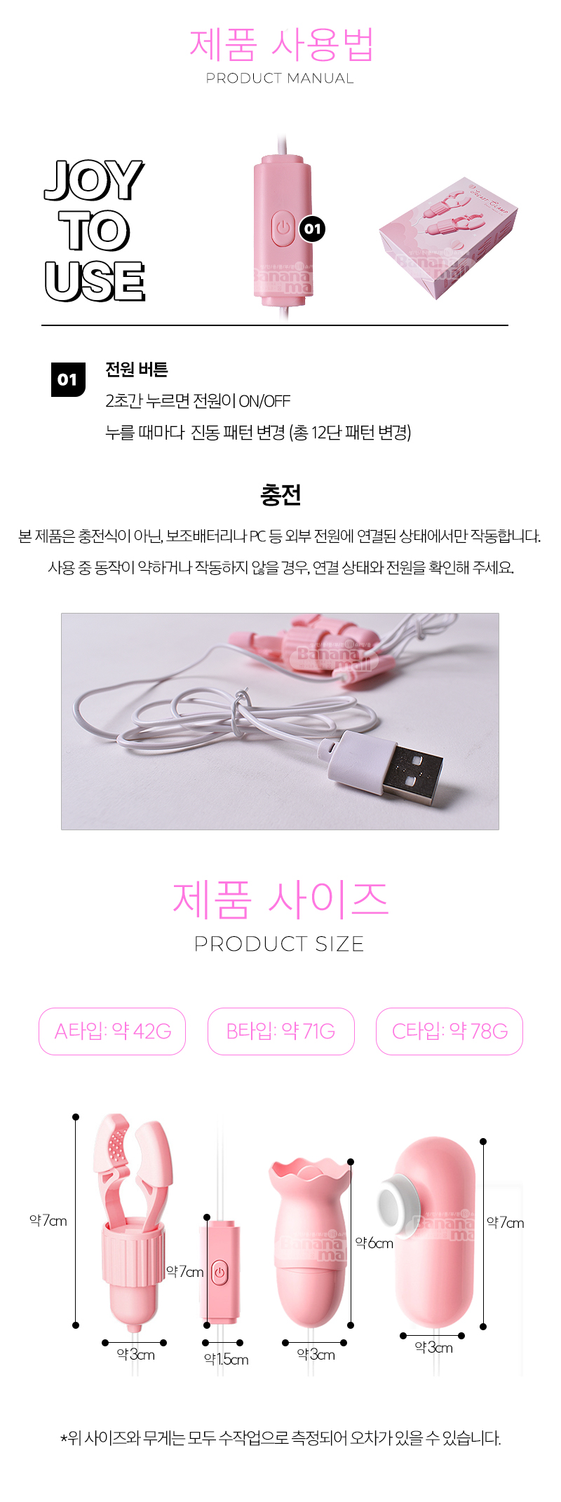 • 윤활젤이나 마사지젤을 꼭사용하세요. 용품 특성상 젤을 사용하지 않을시 중요부위에 손상이 갈 염려가 있습니다.