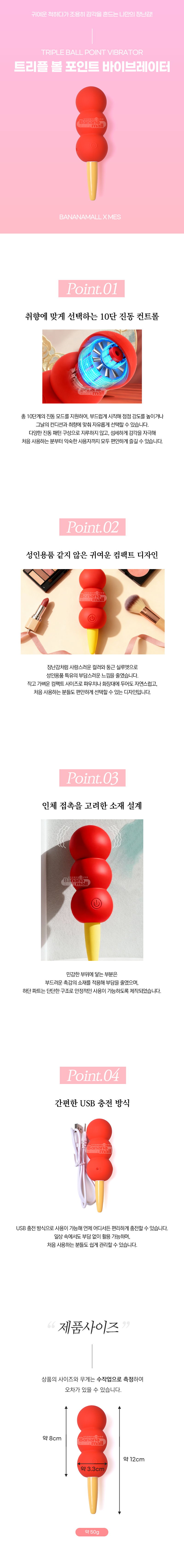 [10단 진동] 트리플 볼 포인트 바이브레이터 (Triple Ball Point Vibrator) - 메이싱(qq028) (MES)