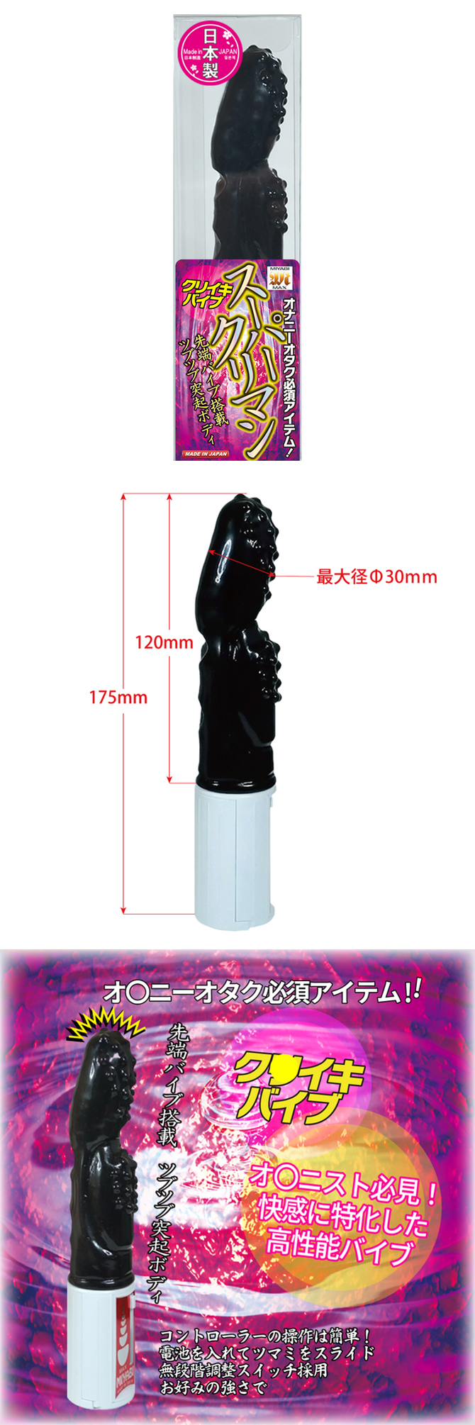 앞면에 끝에서 본체까지 돌기들이 줄지어 있어 클리 자극에 특화된 외형