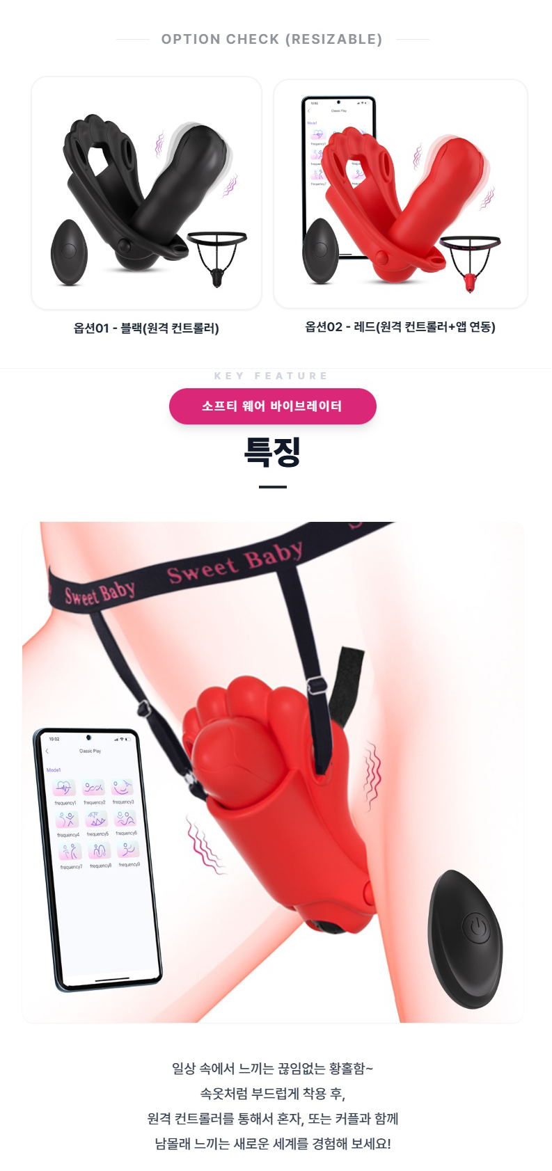 • 실리콘 제품의경우 란제리 착용시 이염될 수 있으므로, 특히 색상이 있는 란제리 착용시 주의 바라며 착용시 충분한 세탁후 착용 바랍니다.