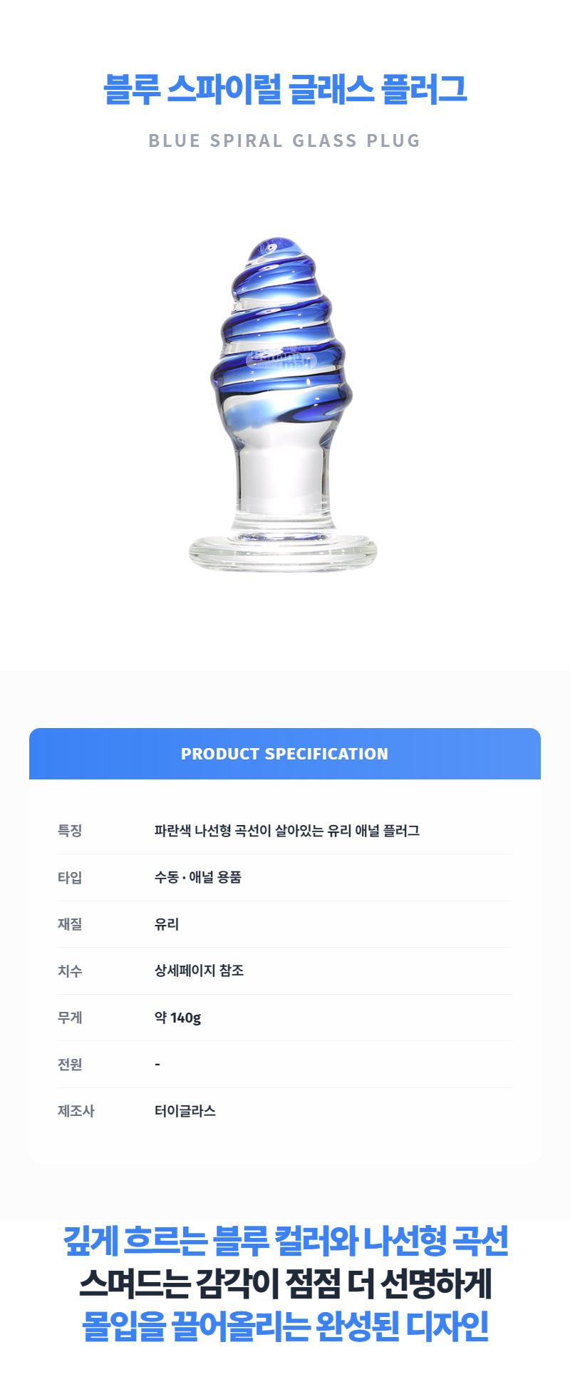 [애널 용품] 블루 스파이럴 글래스 플러그 (Blue Spiral Glass Plug) - 터이글라스(TG-113) (TYG)