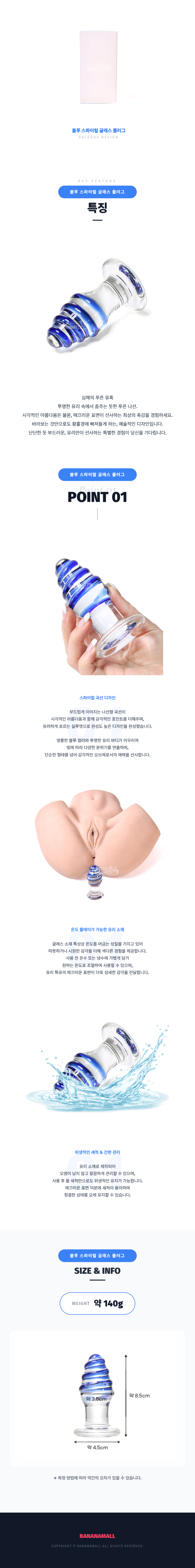 블루 스파이럴 글래스 플러그 , 애널 자위 여성용
