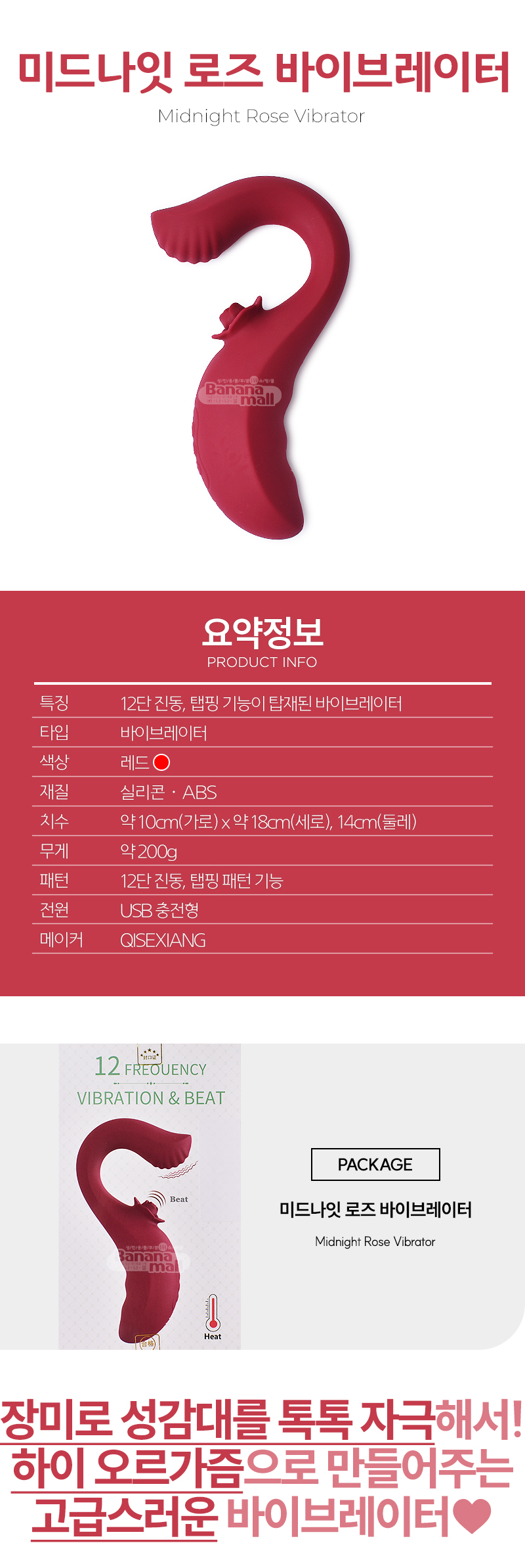 [12단 진동+ 12단 탭핑] 미드나잇 로즈 바이브레이터(Midnight Rose Vibrator) - 치세샹(QSX-MY01) (CSG)