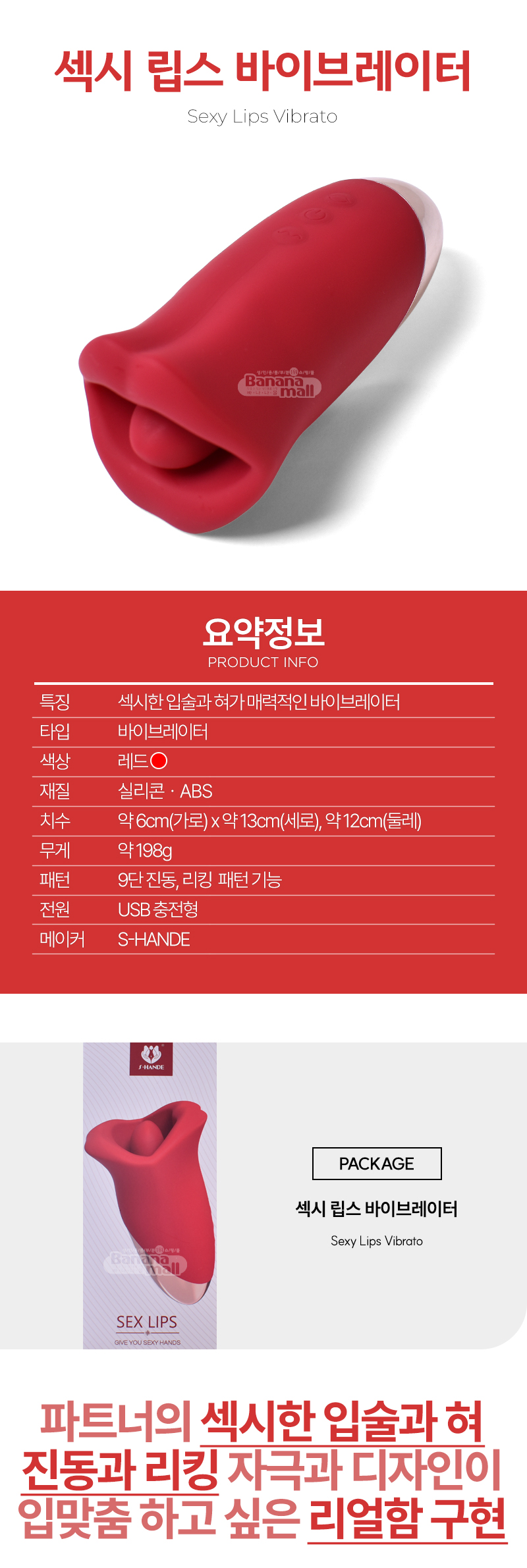 [9단 진동+9단 리킹] 섹시 립스 바이브레이터(Sexy Lips Vibrator) - 에스핸드(SHD-S595) (SHD)