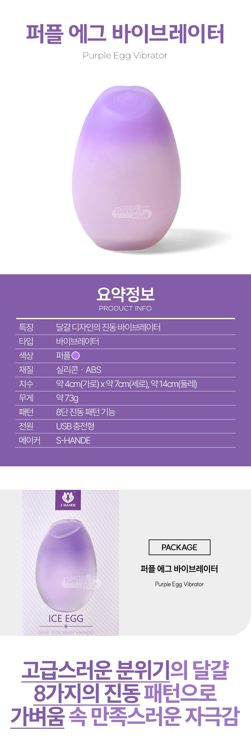 [8단 진동] 퍼플 에그 바이브레이터(Purple Egg Vibrator) - 에스핸드(SHD-S592) (SHD)