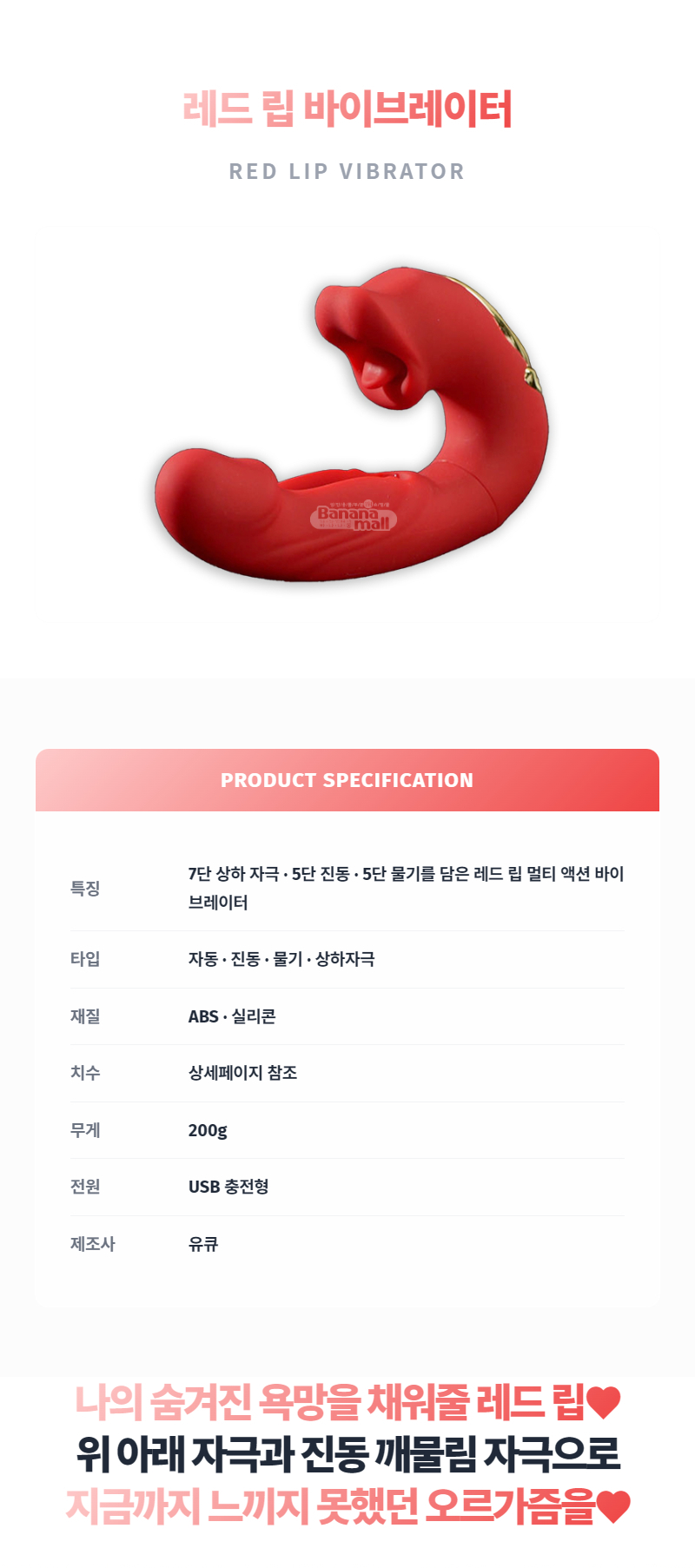 [7단상하자극+5단진동+5단물기] 레드 립 바이브레이터 (Red Lip Vibrator) - 유큐(YQW-812) (YOQ)