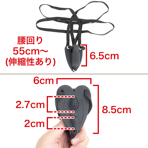 페니스 밴드처럼 벨트를 착용해 로터를 고정하는 실외 플레이용 원격 리모컨 로터입니다. 홀더 부분의 밀착 설계가 포인트로, 진동이 새지 않고 클리토리스를 자극합니다.