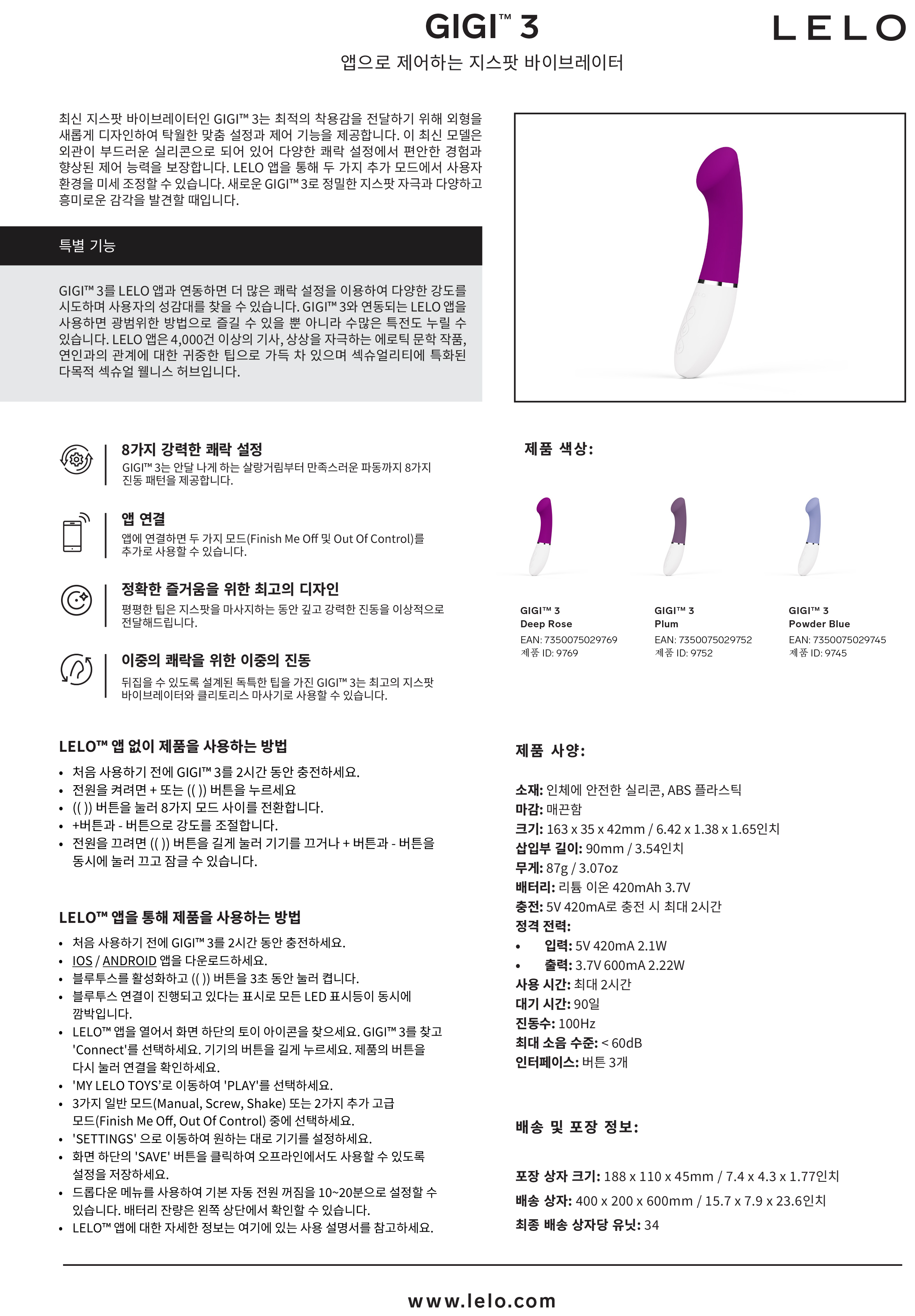 [8단진동+12단강도] 레로 기기3(LELO Gigi 3) - 예잉(9769/7350075029769) (yy)
