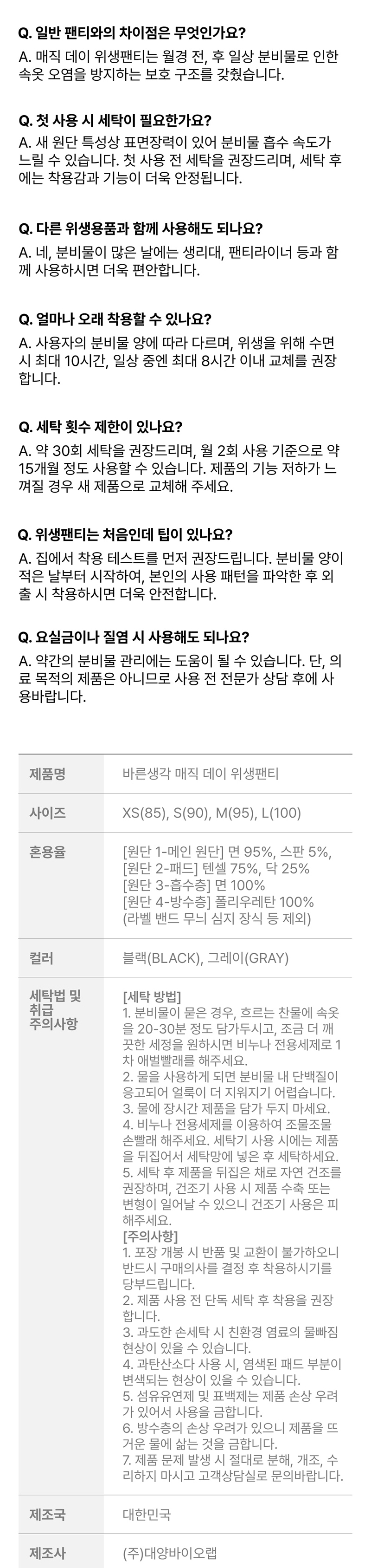 바른생각 매직 데이 위생팬티 , 여자 섹시 팬티