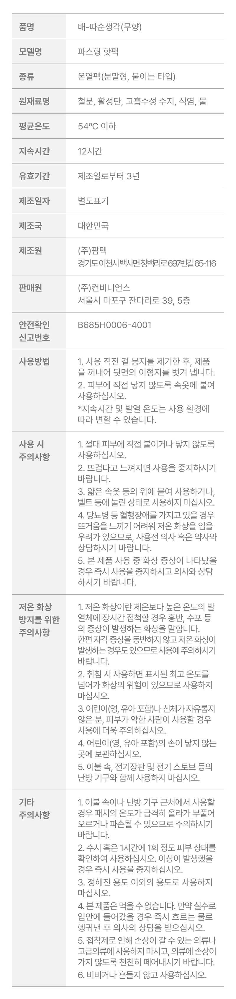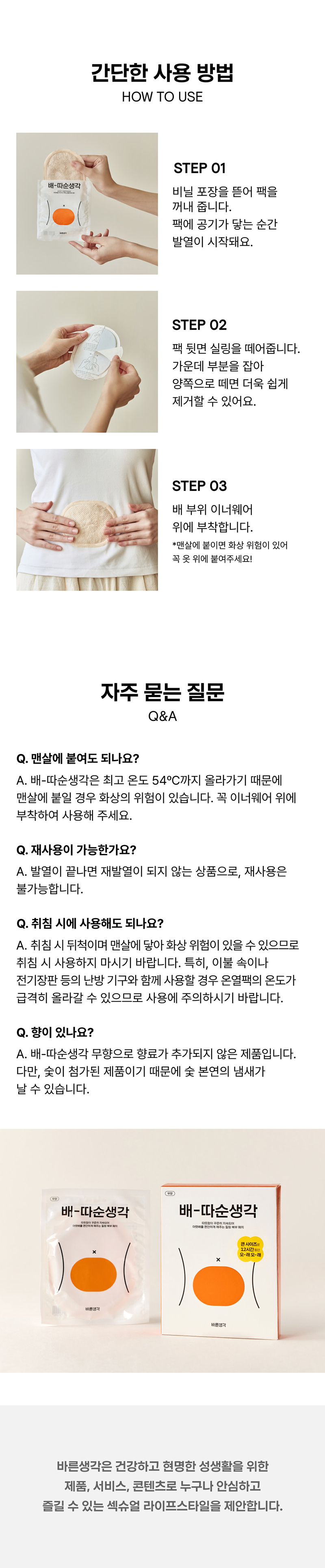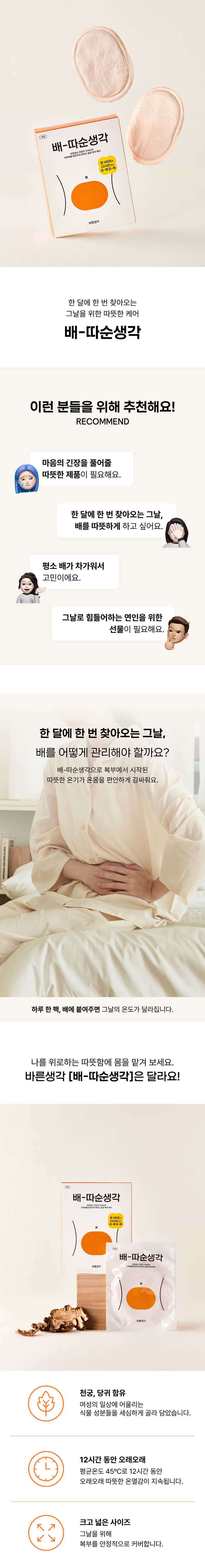 [1회용 온열팩] 바른생각 배-따순생각 5P 무향(Bareun Saenggak Ba-Ttasun Saenggak 5P Unscented) - 바른생각(8809449731245) (BSG)