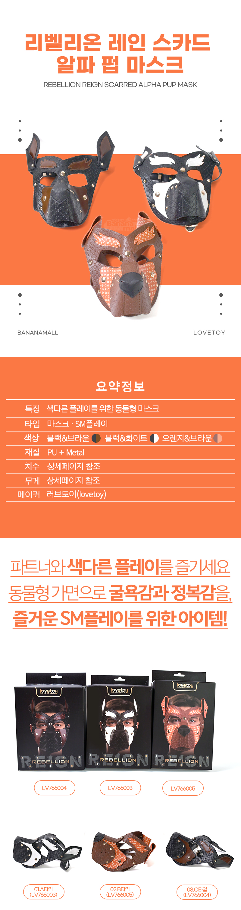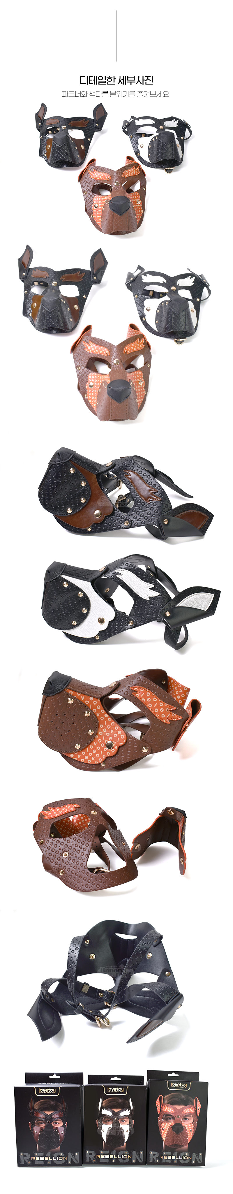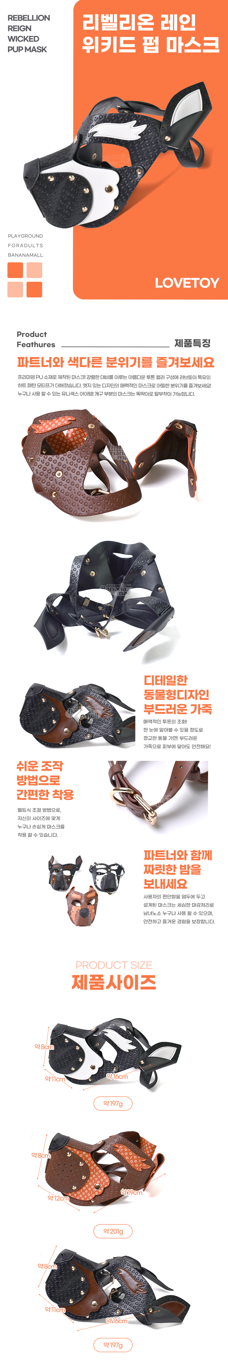 프리미엄 PU 소재로 제작된 마스크! 강렬한 대비를 이루는 아름다운 투톤 컬러 구성에 러브토이 특유의