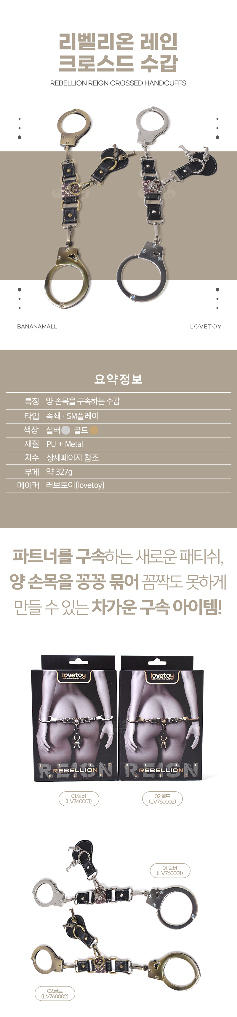 [SM플레이] 리벨리온 레인 헤비 메탈 수갑(Rebellion Reign Heavy Metal Handcuffs) - 러브토이(LV760001/6942063402121) (LVT)