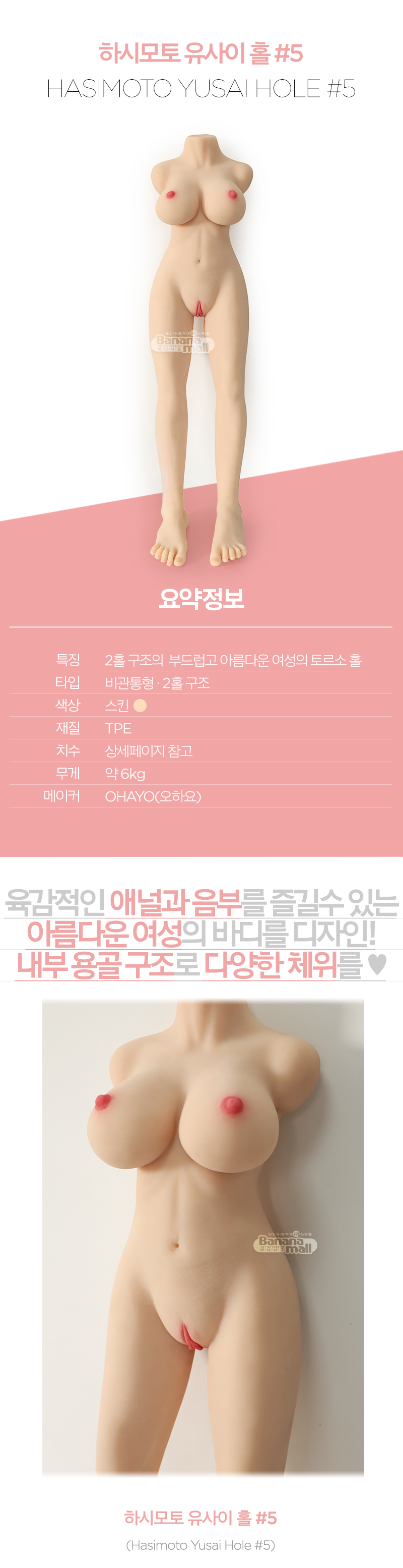 “하시모토 유사이 홀 #5”는 매우 부드러운 촉감의 TPE 소재를 사용하여 민감한 점막에 부담을 주지 않고 위생적이고 실용적이게 사용이 가능합니다 .