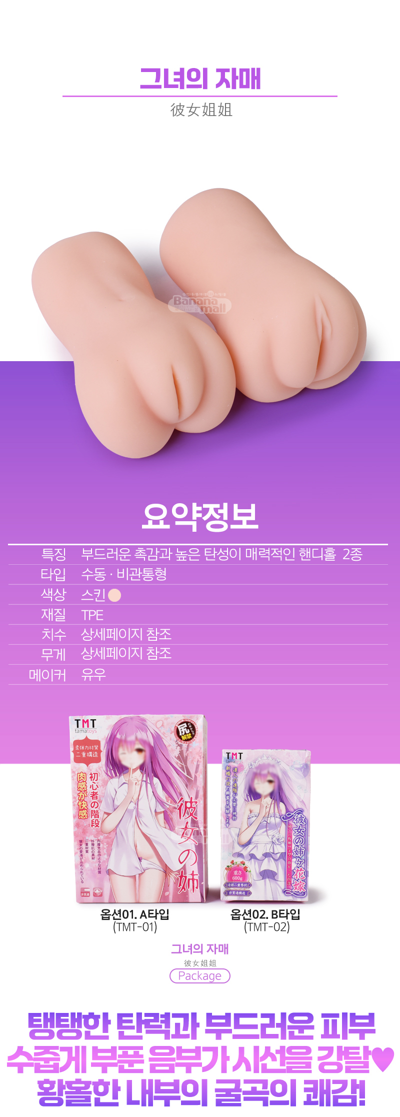 삽입 시 페니스를 포근하게 빈틈없이 자극하며 황홀한 사정으로 이끌어주는 핸디형 오나홀 2종