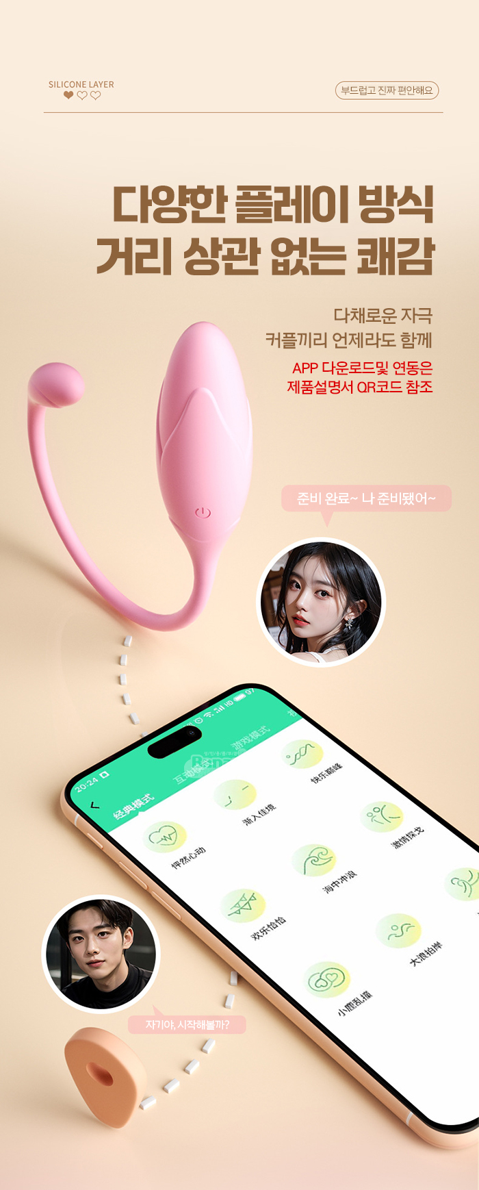 • 용품 사용시 꼭 콘돔을 사용하시길 바랍니다. 위생과 청결뿐아니라 제품의 수명에도 도움이 됩니다.