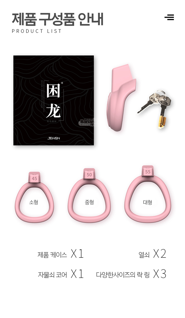 “JEUSN 케스티 케이지 시리즈”는 발기 전 성기에 씌워 사용하는 남성용 정조대 제품으로 견고하고 단단한 바디로 제작, 열쇠까지 동봉되어 하드한 구속감이 더욱 강렬하게 다가오는 아이템입니다.