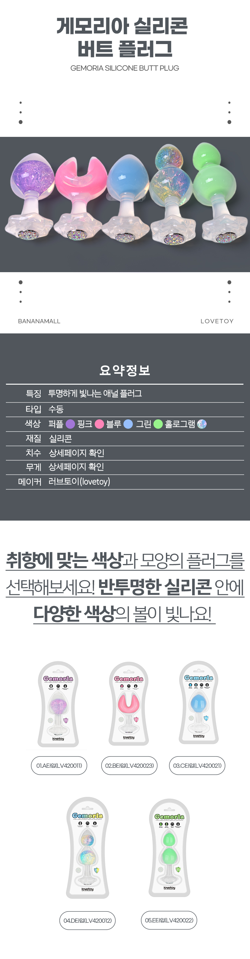 [애널플러그] 게모리아 실리콘 버트 플러그(Gemoria Silicone Butt Plug) - 러브토이(LV420011/6942063402589) (LVT)