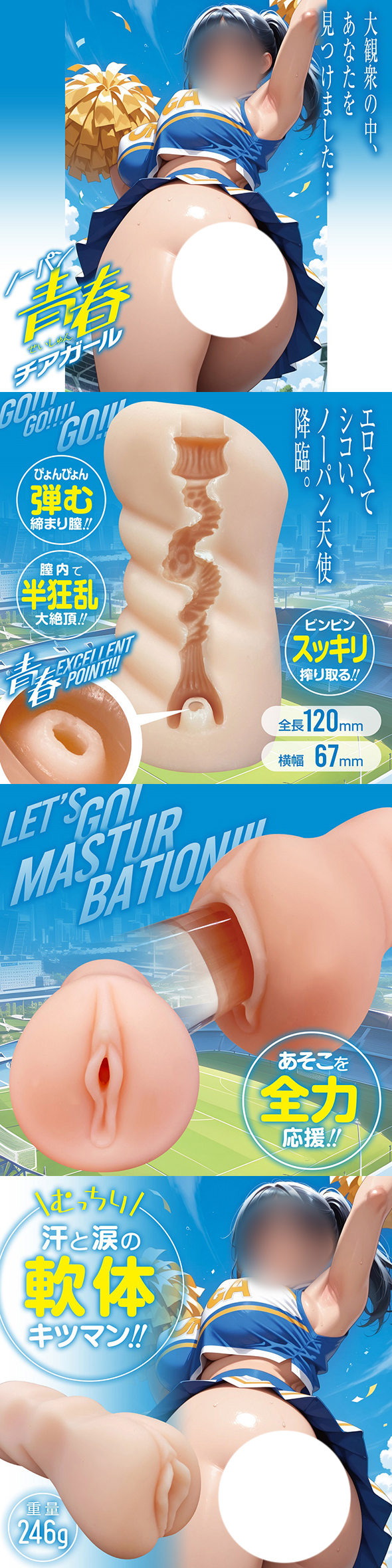 • 관능적인 무팬티 천사가 강림! 치어리더의 그곳을 이미지하여, 땀과 눈물이 섞인 듯한 부드럽고 타이트한 비관통 홀로 재현! 가볍지만 충분히 만족스러운 오나홀, "노팬티 청춘 치어걸".